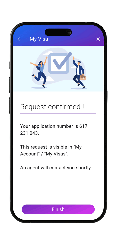 With Visaneo, a fully digital and secure mobile solution, you can complete your application easily — anytime, anywhere — without agencies or paperwork.